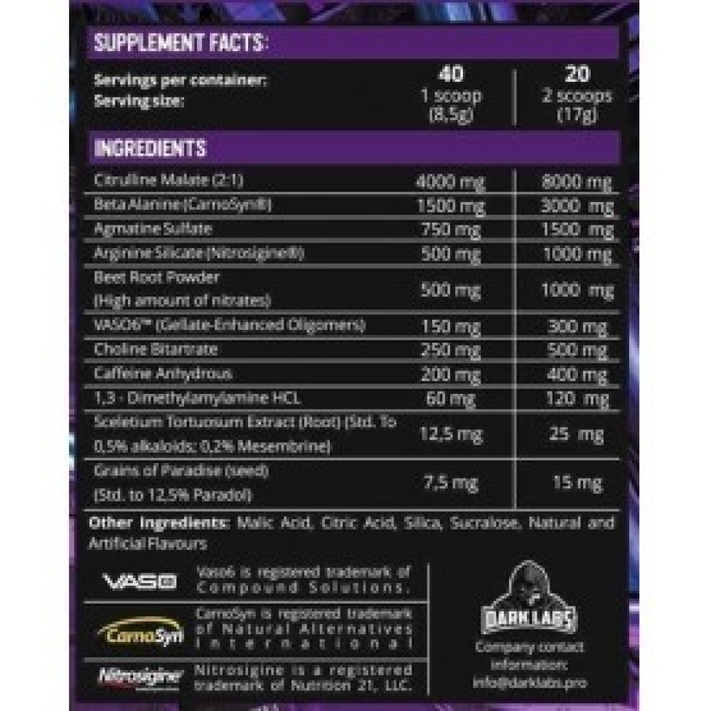 Specification Dark Labs CRACK Pre-Workout Dark Labs